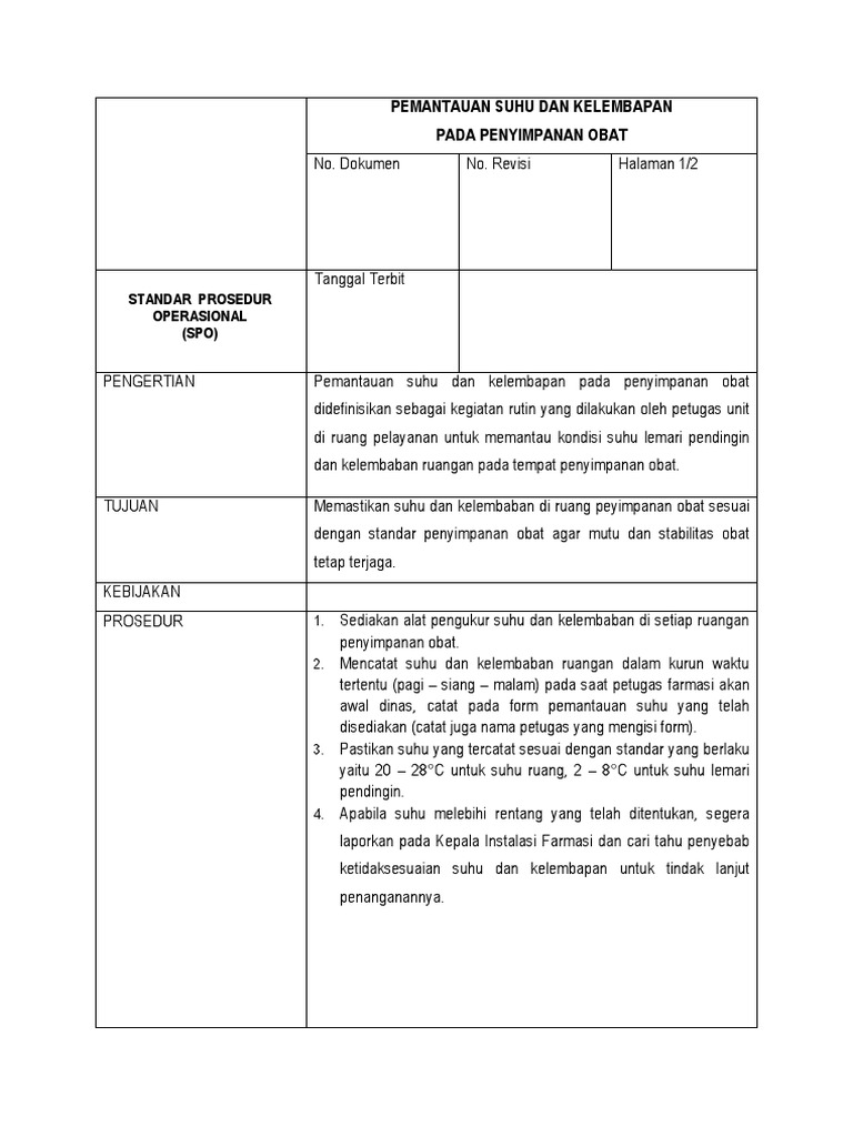 Spo Pemantauan Suhu Dan Kelembaban Ruangan Penyimpanan Obat Dan Suhu Kulkas Pdf
